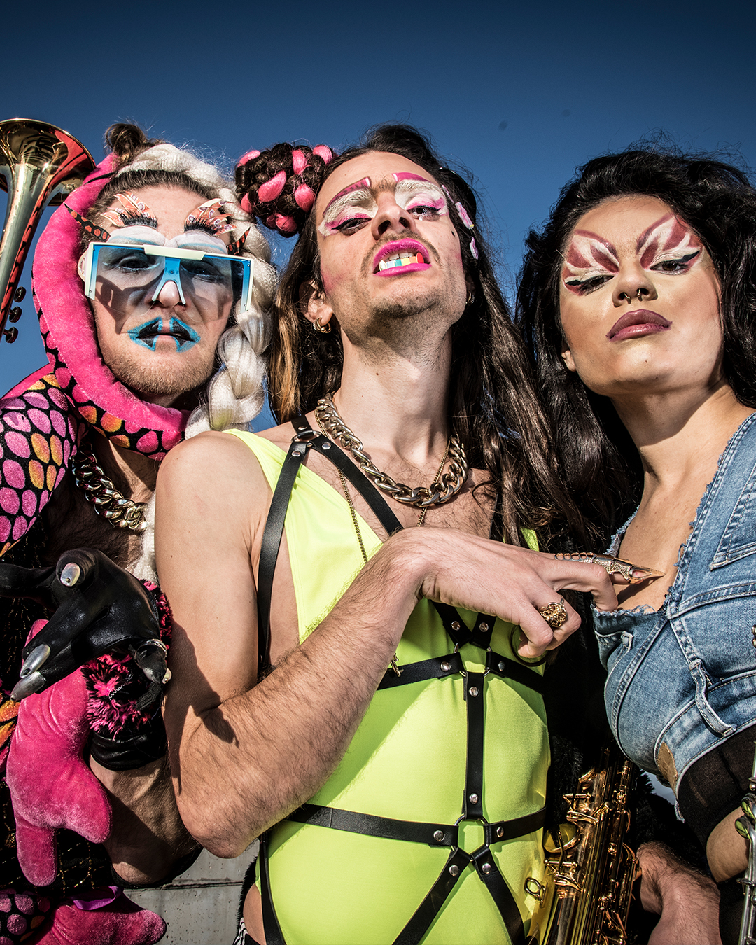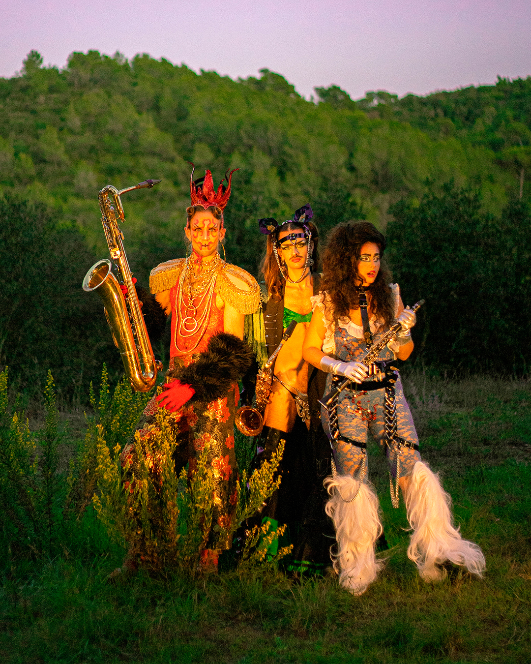 Banda travesti nacida en la ruralidad de Collserola, Las Marikarmen despliega en directo una propuesta híbrida que fusiona música, performance y activismo transfeminista. Con una energía desbordante, sus shows son celebraciones colectivas donde todo puede suceder sobre el escenario. El proyecto rinde homenaje al legado de Lady Marikarmen, figura clave en su universo creativo. Integrado por artistas de distintos territorios, el grupo reivindica la memoria y las identidades disidentes desde una mirada queer, festiva y combativa.
